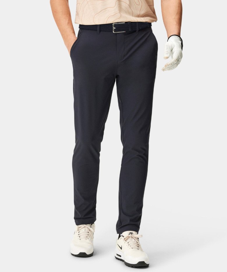 Navržené pro maximální pohodlí a čistý upravený vzhled. Tyto lehké kalhoty nabízejí volnost pohybu v elegantní zúžené siluetě. Prodyšný materiál a čisté linie z nich dělají ideální volbu na cesty nebo do clubhouse.