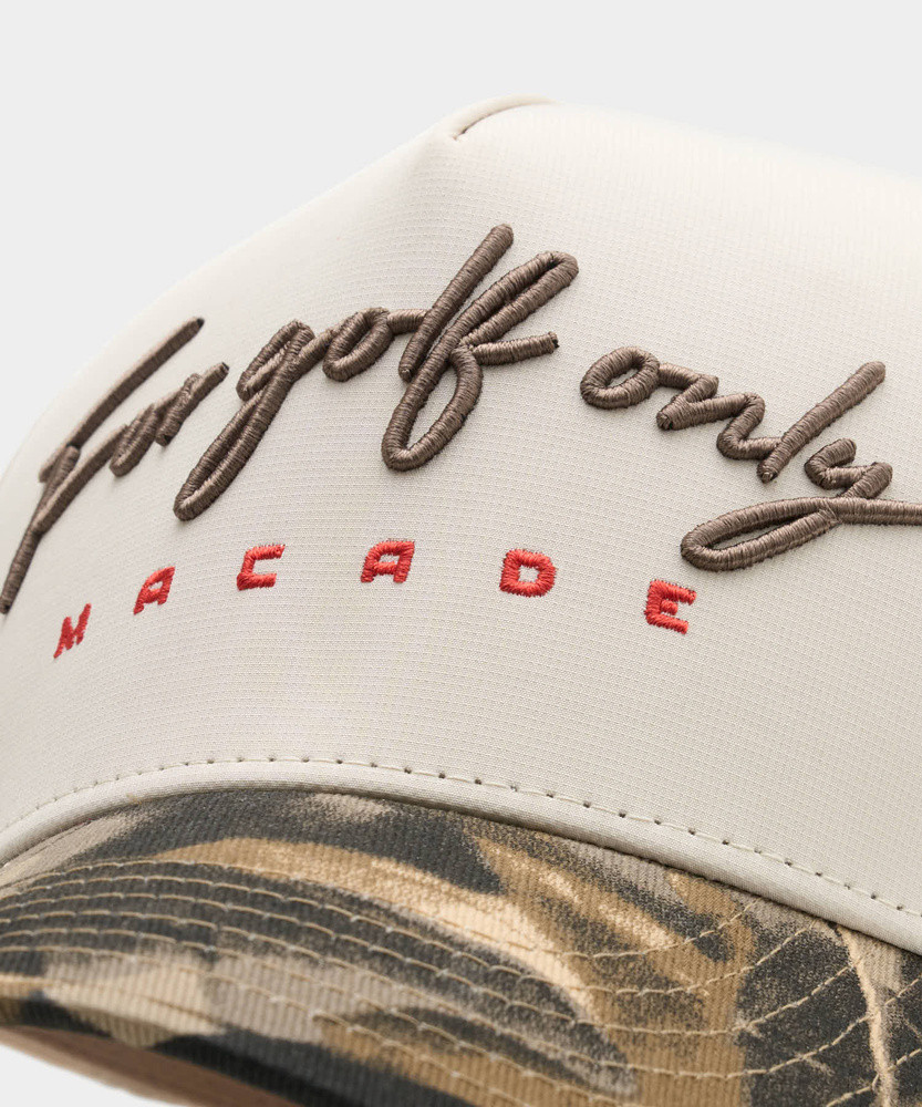 For Golf Only. Osobní motto komunity Macade a připomínka toho, na čem záleží. Tato dvoubarevná A‑Frame snapback čepice dotváří styl na drivingu, na hřišti i v každodenním životě.