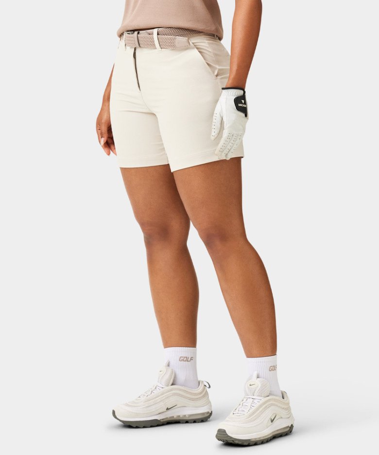 Lehké golfové šortky s hladkým povrchem a čistým moderním střihem. Strukturovaný strečový materiál se při pohybu snadno přizpůsobí, ale zároveň drží tvar po celou hru. Skvěle se hodí pro upravený letní styling.